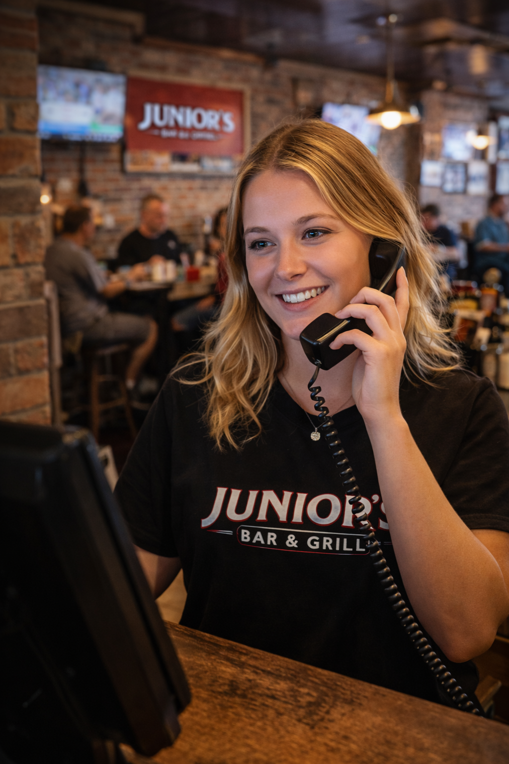 Have a question or planning your next visit to Junior’s? Our team is here to help every step of the way. Whether you’re looking to place a takeout order, plan catering for an upcoming event, or just need more information about our menu, locations, or specials, we’re always happy to connect. We take pride in providing quick, friendly, and reliable service—both in our restaurants and when you reach out. No matter the reason, don’t hesitate to contact us. We’ll make sure you get the answers you need and the experience you expect every time you choose Junior’s Bar & Grill.