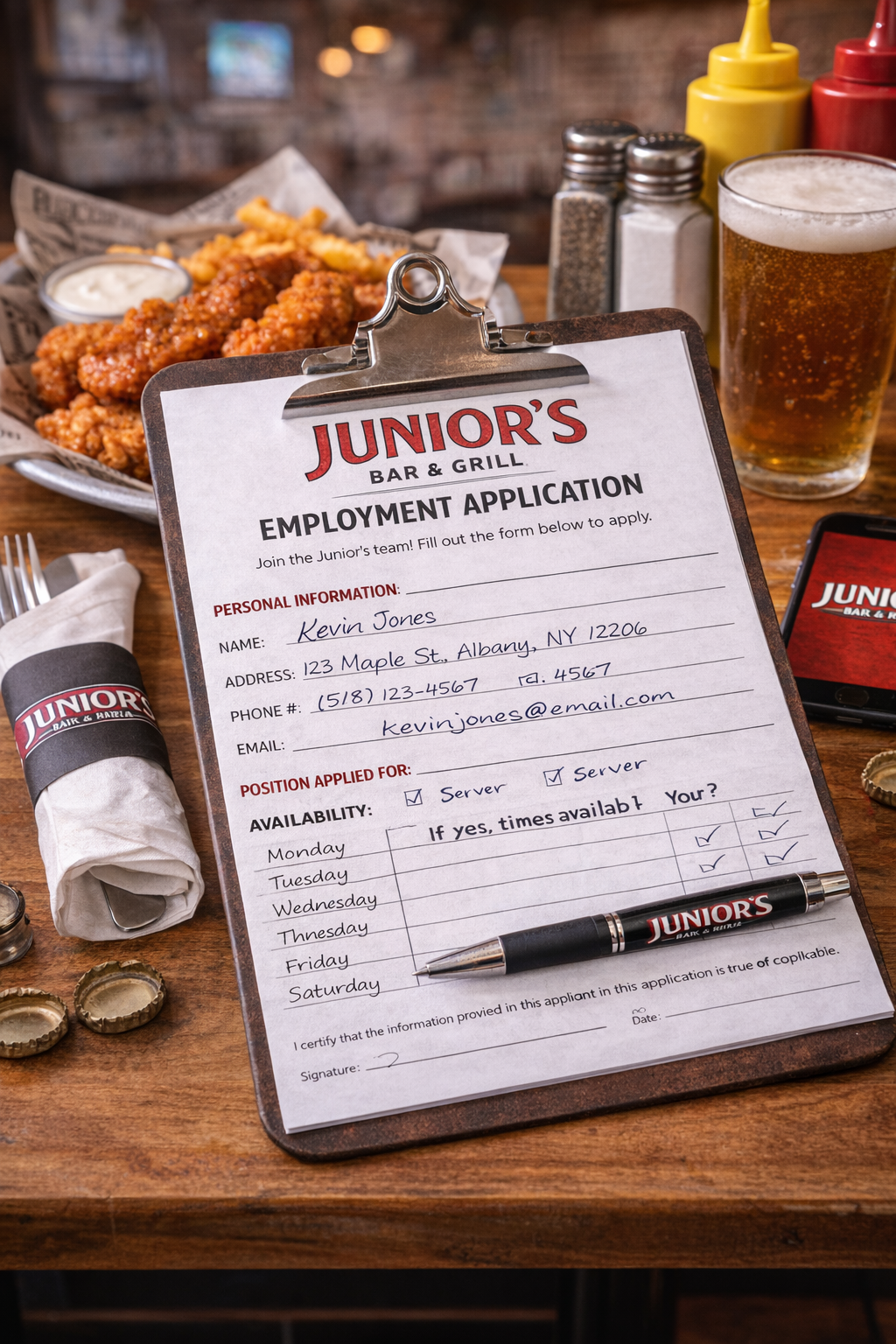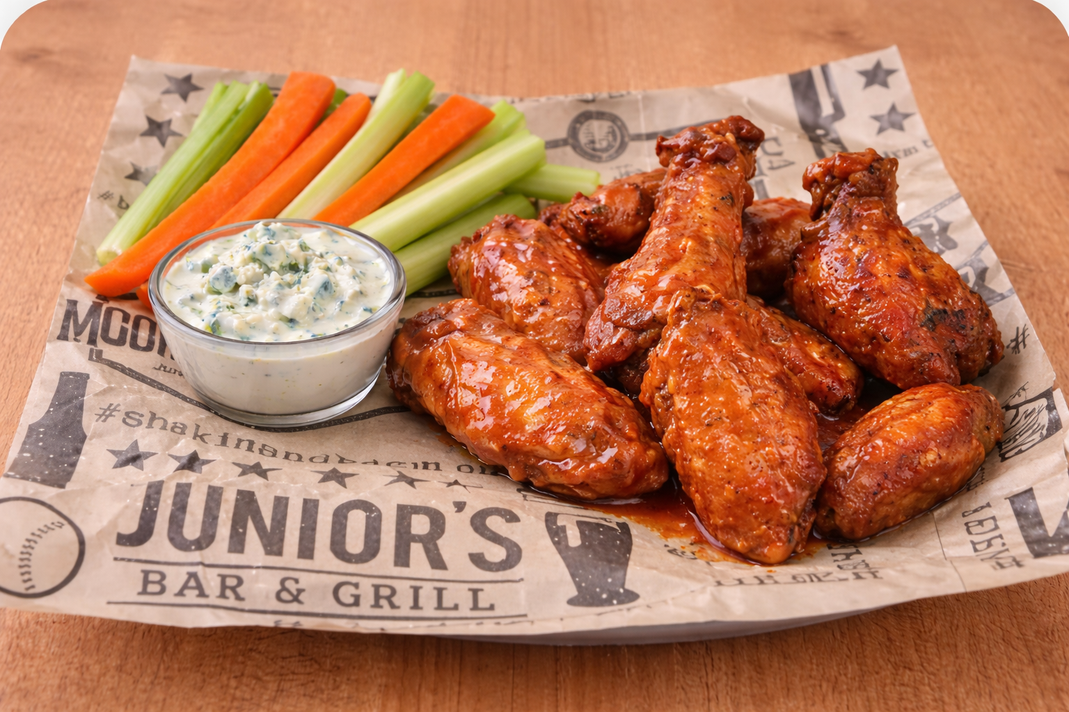 For over 30 years, Junior’s Bar & Grill has been a staple in New York’s Capital District—built on great food, a welcoming atmosphere, and a commitment to doing things the right way. What started as a neighborhood spot has grown into a local favorite known for our wings, signature sauces, and made-to-order classics.